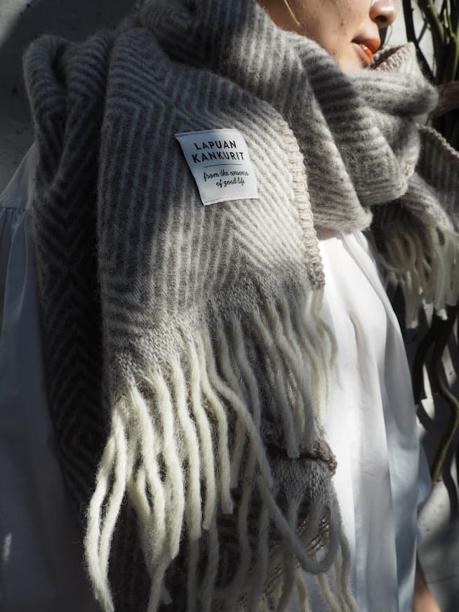 秋冬に大活躍する手袋と大判マフラーが一体となったブランドの定番ポケットショール、ご自宅で大活躍するリネン製品、フィンランドらしいサウナ製品などを展開されています。